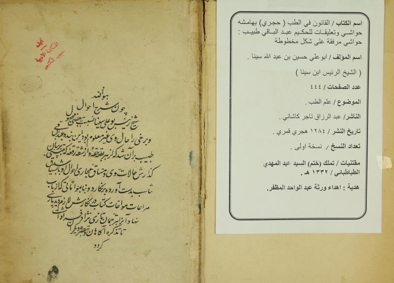وتمثل هذه الهوامش والشروح والتعليقات مخطوطة نادرة وفريدة شرحا وتعليقا على كتاب القانون في الطب للشيخ الرئيس ابن سينا (ره) علاوة على ذالك ان النسخة من طباعة سنة 1284 هـ . ق. وعليها تملك ( ختم ) يعود للسيد عبد المهدي الطباطبائي سنة 1332 هـ ق.