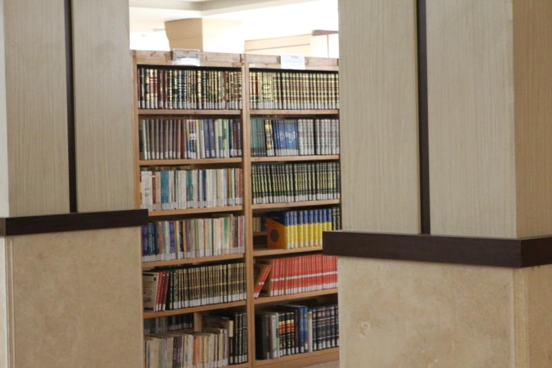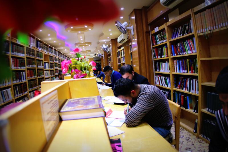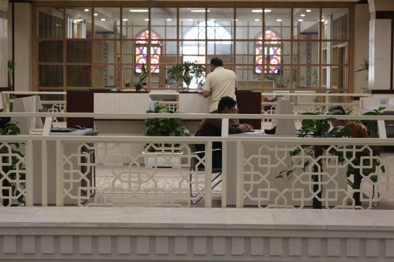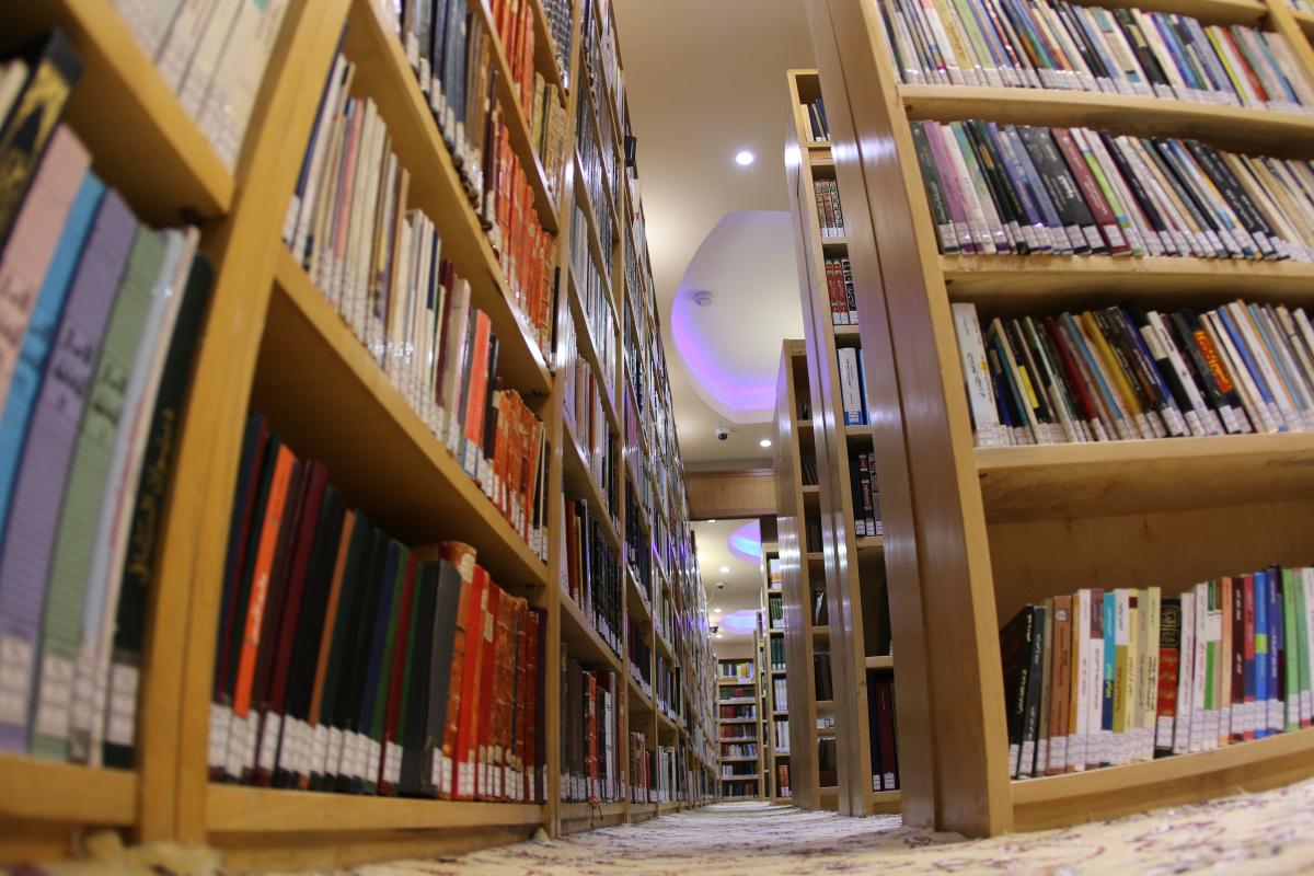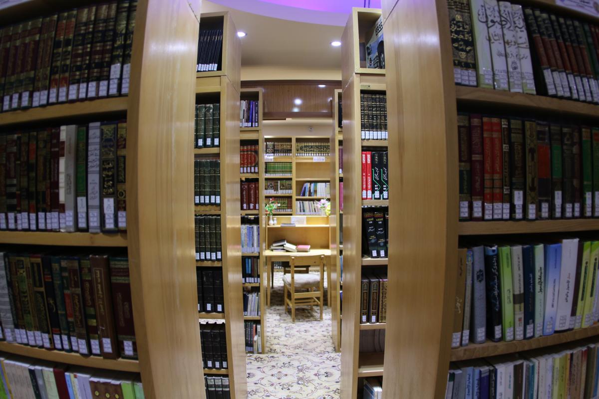 وهي على نحو الرفوف المفتوحة، حيث يكون الكتاب أمام القارئ والباحث مباشرةً ممّا يساعد على سهولة البحث و الاطلاع على الكتب والمصادر الموجودة داخل القاعة - كما أن كتبها رُتِّبَت حسب التصنيف الموضوعي - كالتفسير والمباحث القرآنية، والحديث الشريف، والرجال والتراجم وغيرها من موضوعات المعرفة، علماً إنّ معظم كتب هذه القاعة هي باللغة العربية كما تشتمل على مجموعة من الكتب بالّلغات الأُخرى من قبيل اللغة الفارسية والاردو والانجليزية وغيرها، ويقدر عدد الكتب لكلا القاعتين (قاعة الرجال وقاعة النساء) في الوقت الحاضر (عام 1439 هـ 2018 م) بـ اكثر من (200 ألف) كتاب .