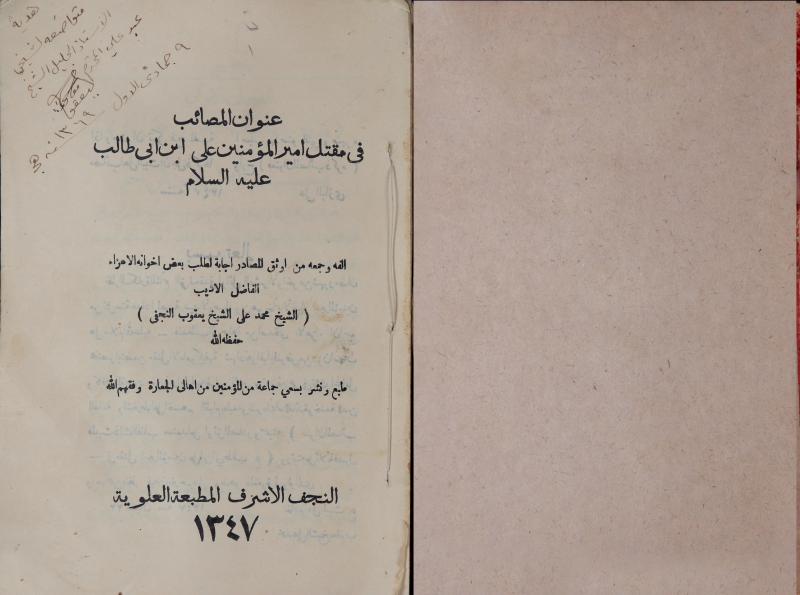 اسم الكتاب : عنوان المصائب في مقتل أمير المؤمنين علي بن ابي طالب (عليه السلام)